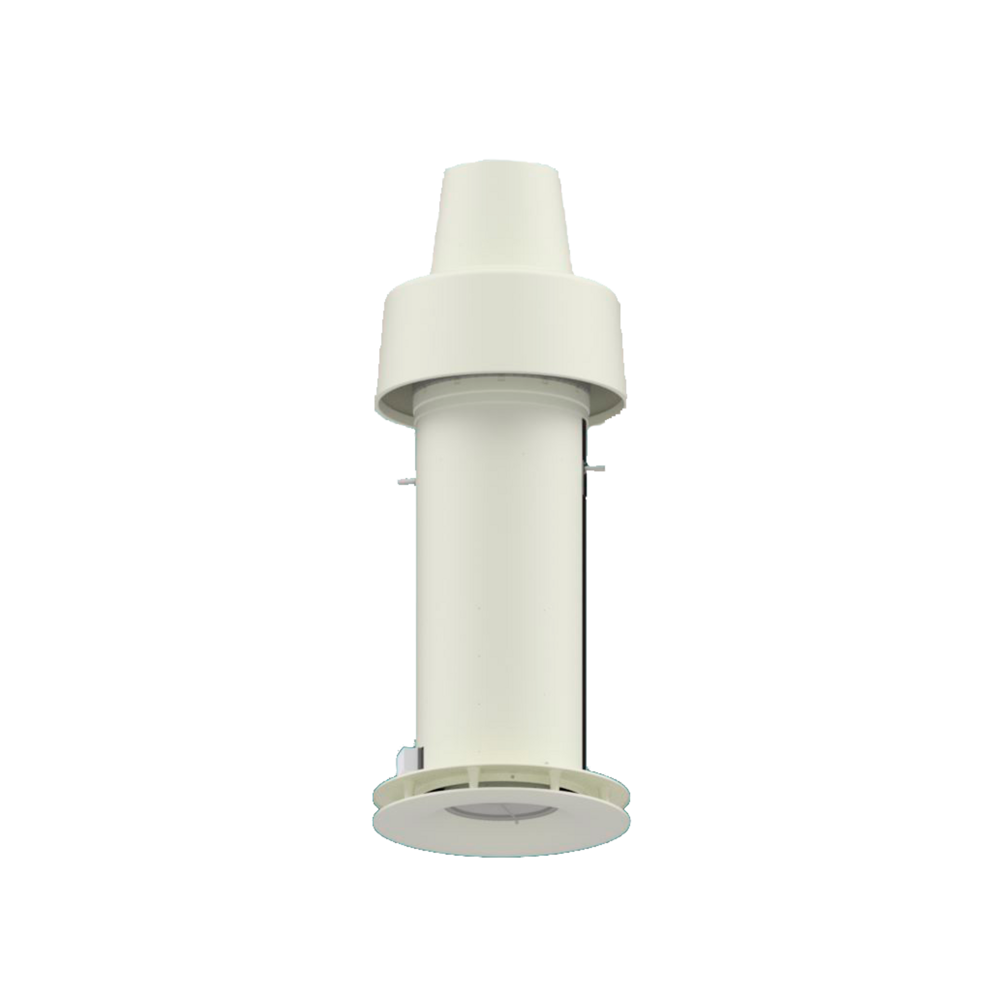 TX 3100A monteres på taget med kun én gennemføring, og uden tilslutning af yderligere rør. Den højtydende og roterende varmeveksler, genvinder varmen fra udsugningsluften som overføres til indblæsningsluften. Dette giver et komfortabelt luftskifte. Veksleren er udstyret med en renblæsningssektor, som forhindrer at der kommer forurenet luft tilbage i lokalet.